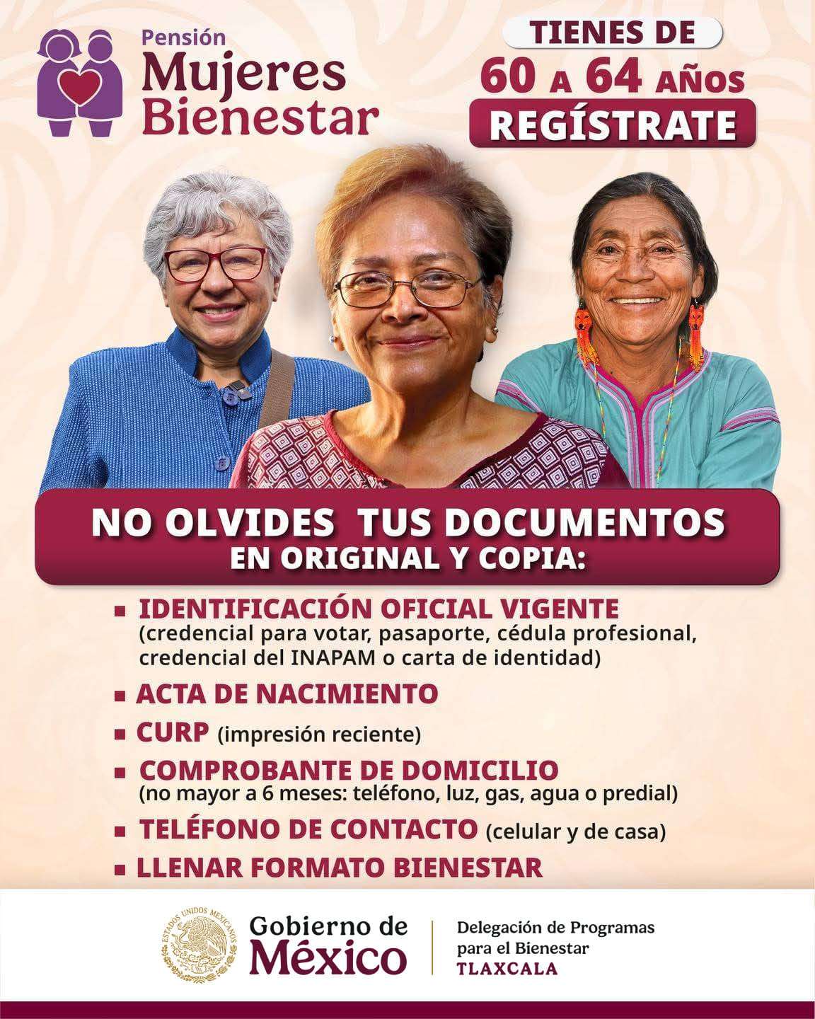 El Gobierno de México que encabeza la Presidenta Claudia Sheinbaum Pardo, anunció que en la última semana de este mes de agosto se continúa con la incorporación de mujeres de 60 a 64 años de edad para inscribirse al programa Mujeres Bienestar y a las personas de la tercera edad a la pensión Adultos Mayores, reveló el delegado federal en Tlaxcala, Carlos Luna Vázquez.